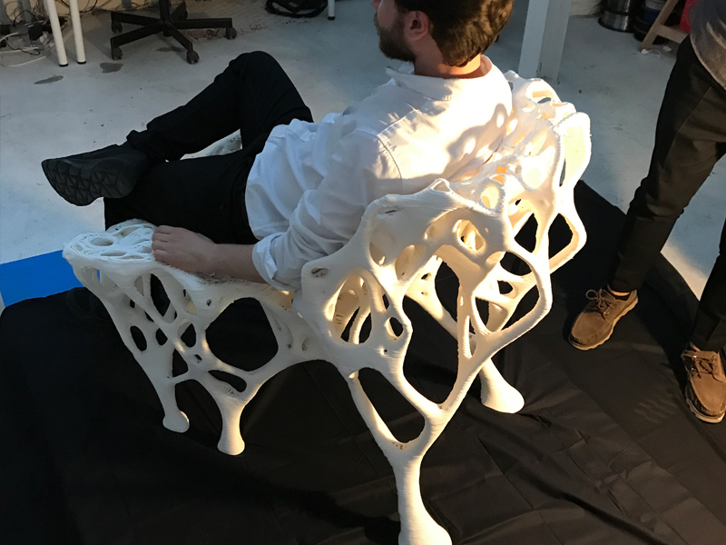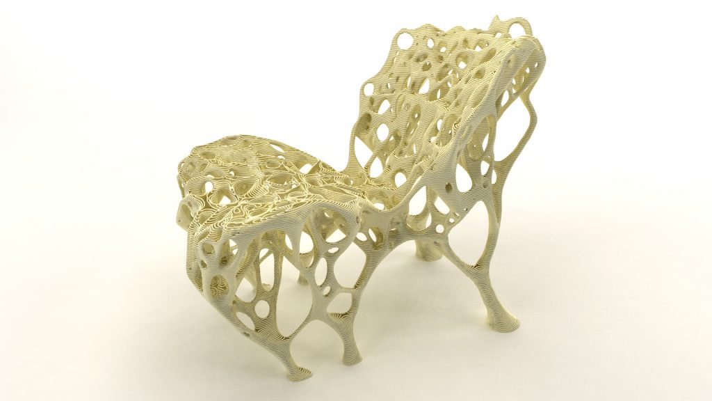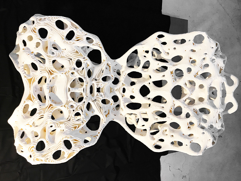 In partnership with product researcher Assa Ashuach, Aibuild created the beautiful Stem 45° chair. Assa collaborated with material scientists at Kyoto institute of technology to analyse Bamboo at macromolecular level and by simulating it’s structure the STEM 45° Chair was produced using the development of an algorithm that digitally mimics the growing pattern of the phyllostachys breed of bamboo. Aibuild software was used to automatically analyse it’s angles and curvature, which we were then able to successfully print without the need for any structural supports.