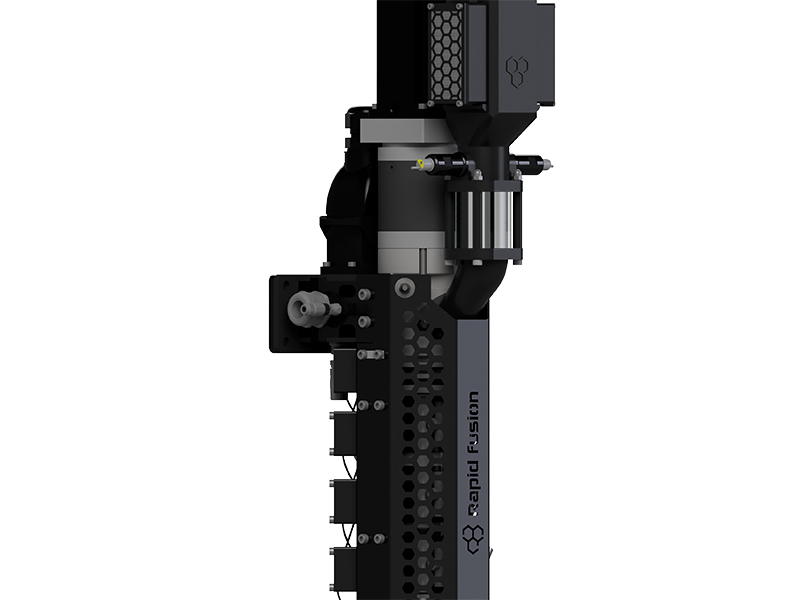 The Rapid Fusion PE-320 Pellet Extruder is a versatile and powerful tool designed for industrial – grade 3D printing. It offers high -performance capabilities and can be seamlessly integrated into CNC machines and robots unlocking a new dimension of possibilities. With its advanced features and precise temperature control this extruder allows for efficient extrusion of a wide range of materials, including abrasive ones like carbon fibre. It combines power, precision, and versatility making it an excellent choice for upgrading and expanding capabilities on robot or CNC setup.