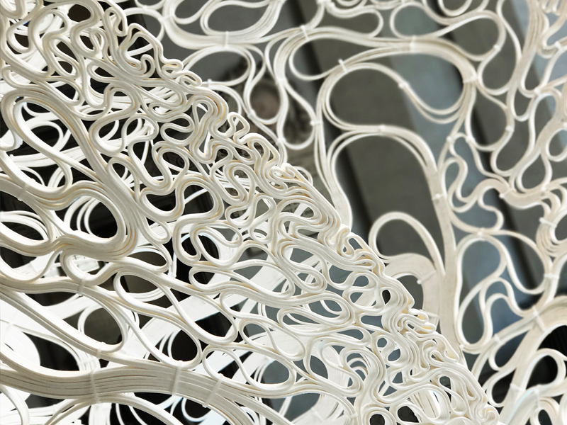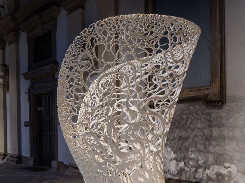 Named after the Greek word for flora that has no differentiation between stem and leaf, Thallus is an experimental structure investigating form and pattern generated by advanced manufacturing and computational methods.