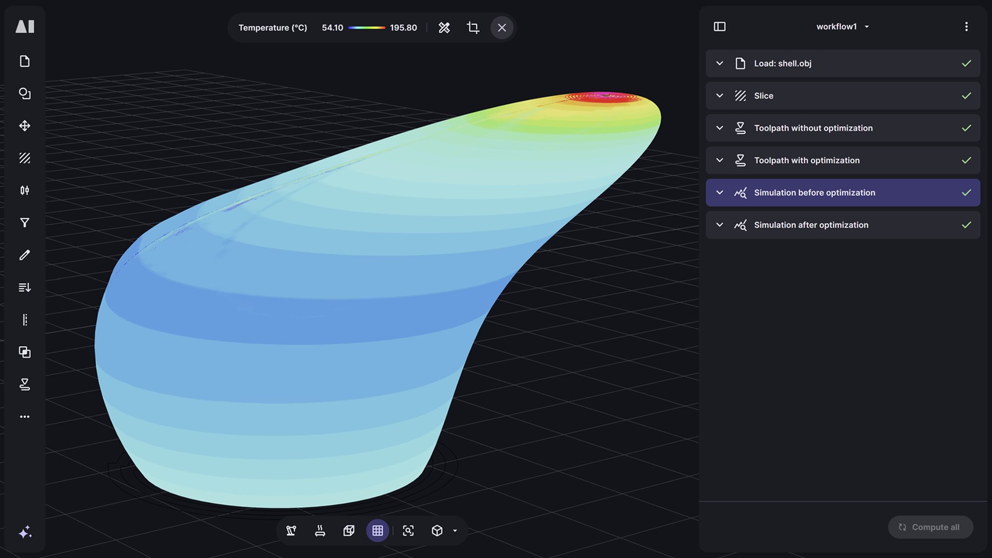 Aibuild accurately predicts the thermal behaviour of a wide range of materials that are physically characterized in our R&D lab. Automatic optimization of process parameters for each material streamlines production, ensuring perfect prints the first time.